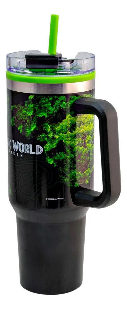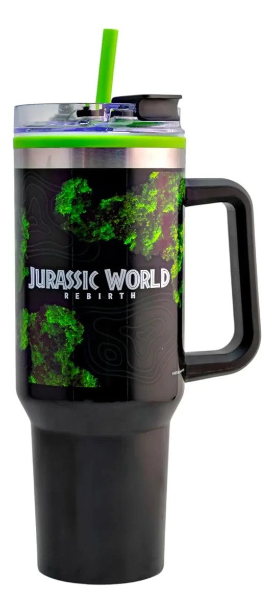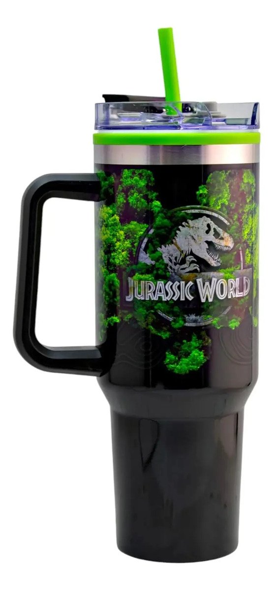 ¡Jurassic World abre sus puertas trayendo consigo un nuevo termo con asa ofreciendo un transporte fácil y un agarre seguro, con tapa hermética que minimiza derrames y fugas, capturando a la perfección la esencia de la popular saga de películas, con un diseño único y sorprendente!