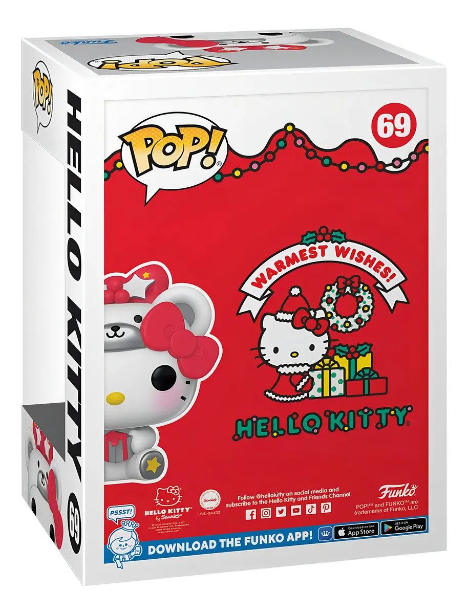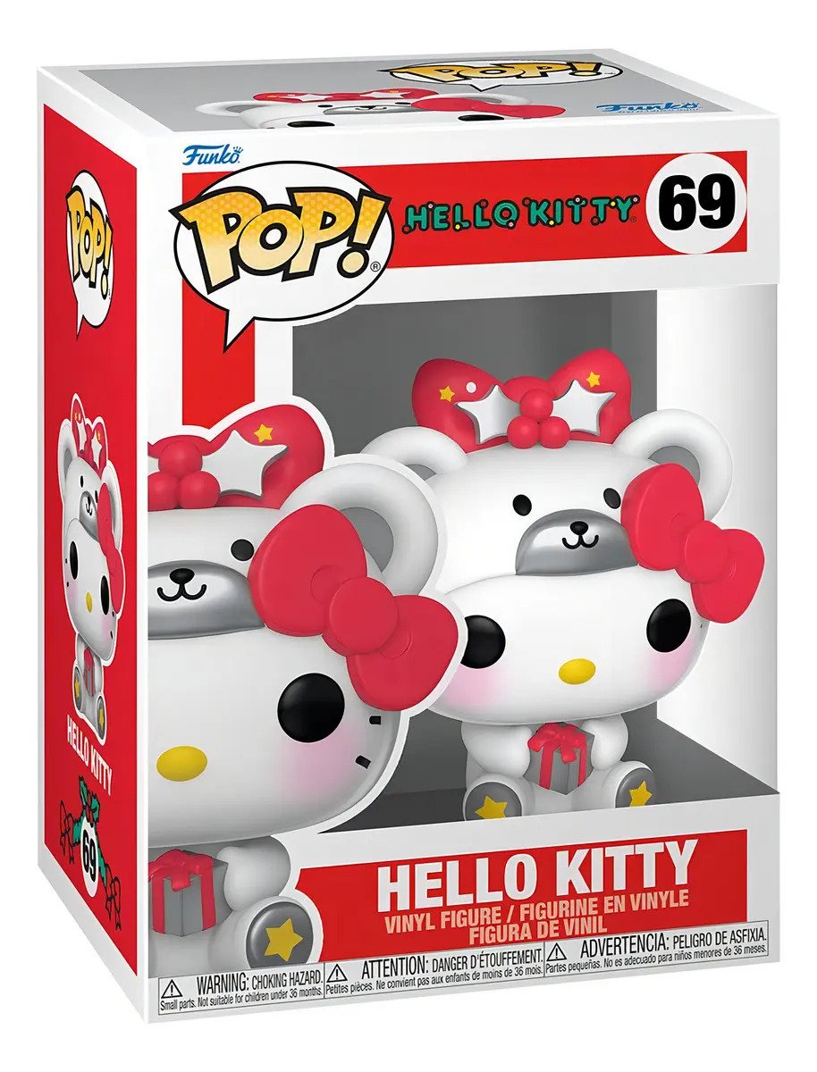 ¡Amplía tu círculo de amigos con Pop! ¡Hello Kitty® con regalo! ¡Con un adorable disfraz de oso polar, Pop! ¡Hello Kitty seguramente será una adición festiva a tu colección Sanrio®! La figura de vinilo mide aproximadamente 3,35 pulgadas de alto.
