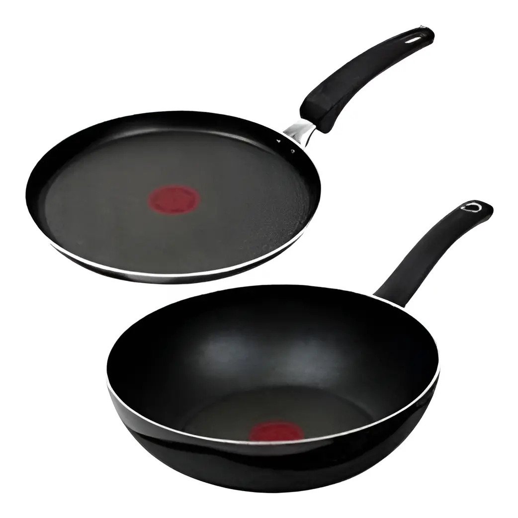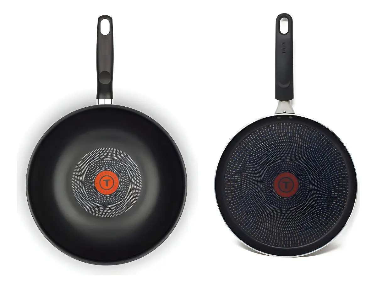 Juego De Sarten Crepero Y Wok T-fal De 28 Y 25 Cm B3061082m Color Negro