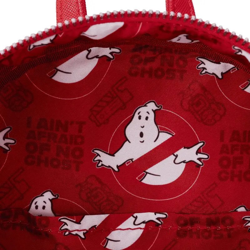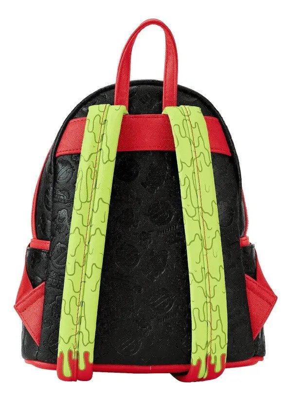 Si la actividad paranormal se materializa repentinamente durante tus viajes, ¡prepárate! Para las aventuras con nuestra mini mochila con el logotipo de Loungefly Ghostbusters. Este enérgico accesorio cuenta con un bolsillo circular con cremallera frontal totalmente figurativo, que muestra el logotipo clásico de la película. ¡En la oscuridad, el fantasma en medio del letrero rojo de “no fantasma” brilla! Una impresión en relieve incluye un motivo de patrones de imágenes familiares de la película, incluido el Stay-Puft Marshmallow Man, una apariencia encore del logotipo clásico de la película y otras sorpresas. Sobre las correas, un misterioso limo verde agrega un toque perversamente divertido. ¡Empaca tus trampas fantasma y paquetes de protones con estilo!