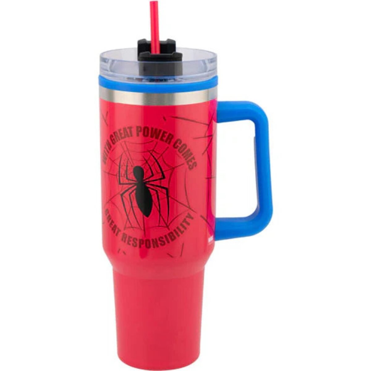 ¡Marvel abre sus puertas trayendo consigo un nuevo termo con asa ofreciendo un transporte fácil y un agarre seguro, con tapa hermética que minimiza derrames y fugas, capturando a la perfección la esencia del poderoso Spider-Man, con un diseño único y sorprendente!
