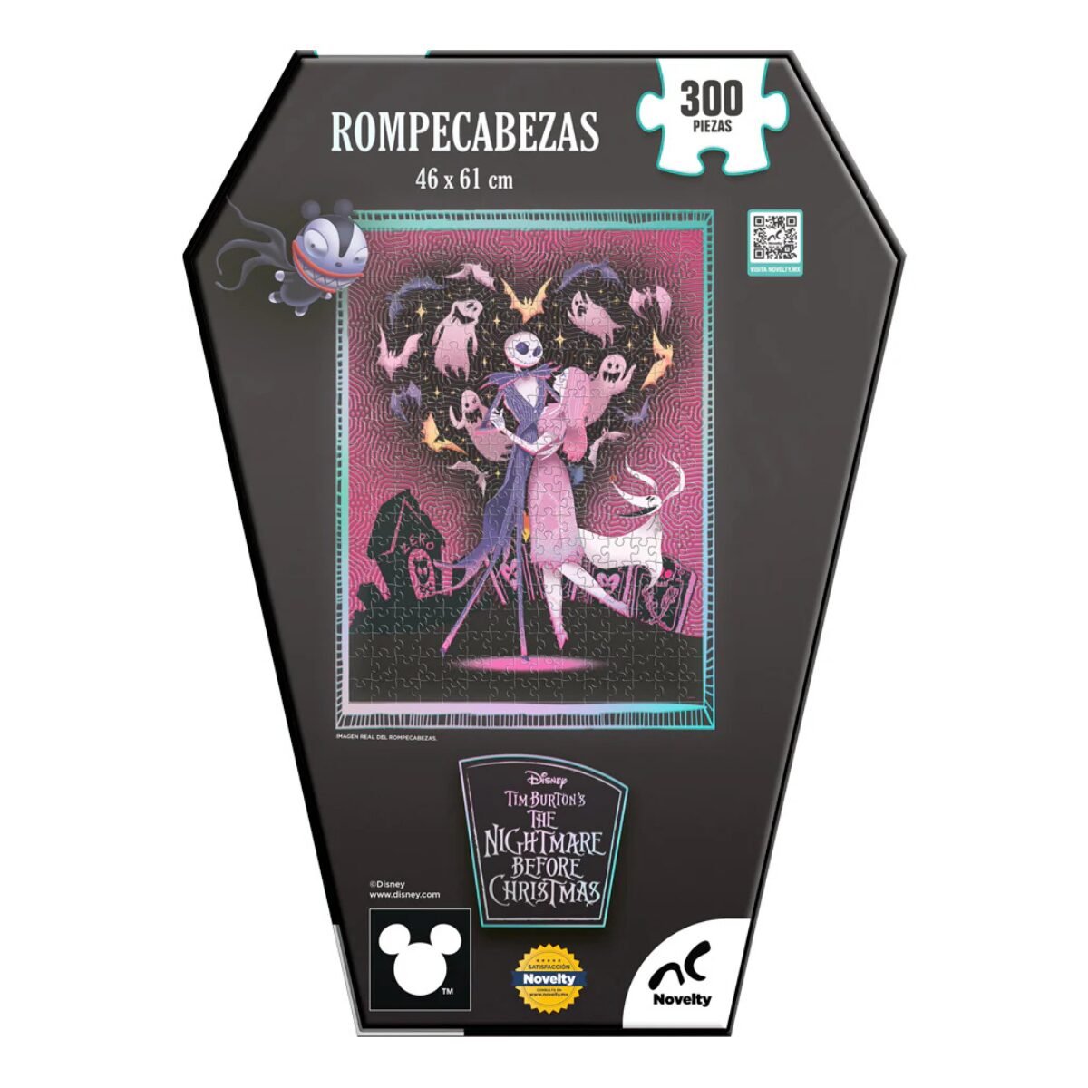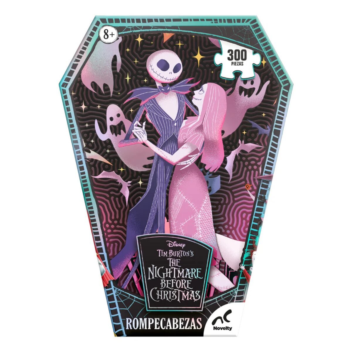 Sumérgete en el mundo oscuro y encantador de The Nightmare Before Christmas con este rompecabezas de 300 piezas con empaque en forma de féretro. Ideal para los fans del universo de Tim Burton, este rompecabezas combina un diseño exclusivo, detalles únicos y una presentación digna de colección.